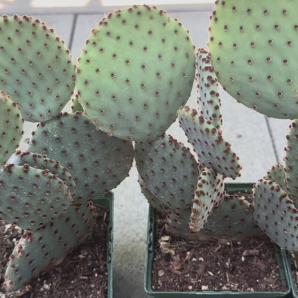 Product Description Add a splash of vibrant color to your garden or home with the Santa Rita Prickly Pear Cactus ! This low-growing cactus forms large clumps and features flat, round pads that shift from a striking reddish-purple in cold or drought conditions to a soft bluish-gray in summer. In late spring, enjoy a display of orange-red flowers, followed by oblong, purple, plump fruit.